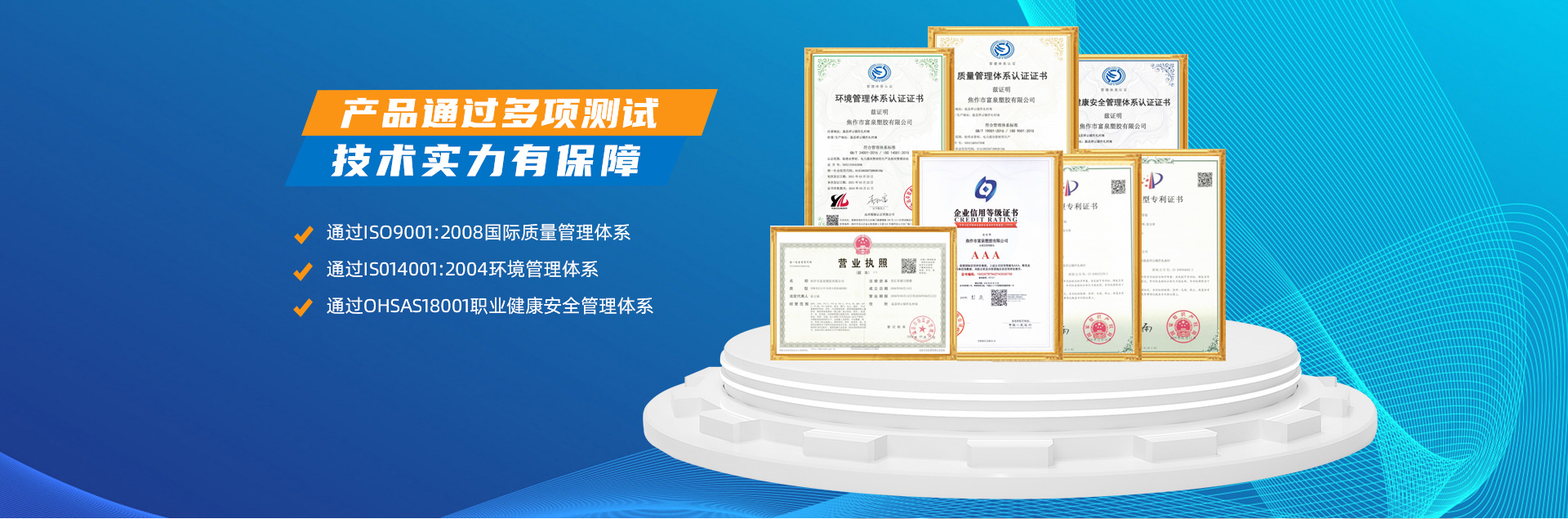 - 焦作市富泉塑膠有限公司,創(chuàng)立于1995年,是一家集研發(fā)、設計、生產(chǎn)、銷售為一體的大型管材企業(yè)。公司位于太極故里、黃河之濱一一河南焦作溫縣。公司占地128畝,現(xiàn)有職工210余人,其中具有中技術職稱的19人。生產(chǎn)、檢驗設備58臺(套),包括PVC實壁管生產(chǎn)線11套、PE實壁管生產(chǎn)線12套、HDPE雙壁波紋管生產(chǎn)線6套、PVC雙壁波紋管生產(chǎn)線5套,檢驗設備14臺(套)。主要產(chǎn)品有:Φ20mm-630mm、各種壓力規(guī)格的PVCU、PVC-M、PE給水管材,PVC-U節(jié)水灌溉管材,HDPE燃氣和礦用管材,DN200-800mm的HDPE、PVC雙壁波紋管及各種噴灌、滴灌工程材料。承接大中型市政供排水、飲水安全及節(jié)水灌溉等工程?! 「蝗苣z公司重視產(chǎn)品的質量、安全、環(huán)保和節(jié)能,在同行業(yè)中率先完成了“新華節(jié)水產(chǎn)品認證”,全方面通過ISO9001:2008國際質量管理體系、IS014001:2004環(huán)境管理體系和OHSAS18001職業(yè)健康安全管理體系的一體化導入,并建立起規(guī)范的現(xiàn)代企業(yè)管理體系。公司以“質量”為先導,采用質量跟蹤、多環(huán)節(jié)把關的方法,組建具有行業(yè)水準的企業(yè)技術檢測中心,常年委托水利部節(jié)水灌溉設備檢測中心、河南省產(chǎn)品質量監(jiān)督檢驗院對產(chǎn)品跟蹤檢測,并由中國人民保險公司承保產(chǎn)品質量。公司連續(xù)多年被河南省水利廳確定為“安全飲水設備、節(jié)水灌溉設備”定點生產(chǎn)企業(yè),并獲得“中國名優(yōu)產(chǎn)品”“質量、服務、信譽AAA企業(yè)”“河南省**產(chǎn)品”“河南省水利企業(yè)”“河南省守合同、重信用企業(yè)”等榮譽稱號。 富泉塑膠公司堅持“用戶為上”的服務理念,長期以來,全方面關注客戶價值,不斷提升服務水平。服務隊伍常年為客戶的產(chǎn)品設計、施工、安裝提供合理的方案和全程細致、周到、**、快捷的技術服務。公司自成立以來,一直堅持以人為本的宗旨,塑造企業(yè)形象,并致力于新產(chǎn)品的開發(fā),憑借雄厚的技術開發(fā)能力,先進的工藝制造流程,嚴格的質量管理保證體系,優(yōu)良的售后服務網(wǎng)絡,已成為河南省大的飲水、灌溉及排水管材設備制造商。產(chǎn)品暢銷全國,而且還以公司雄厚的綜合實力在業(yè)界中占據(jù)著重要的地位。